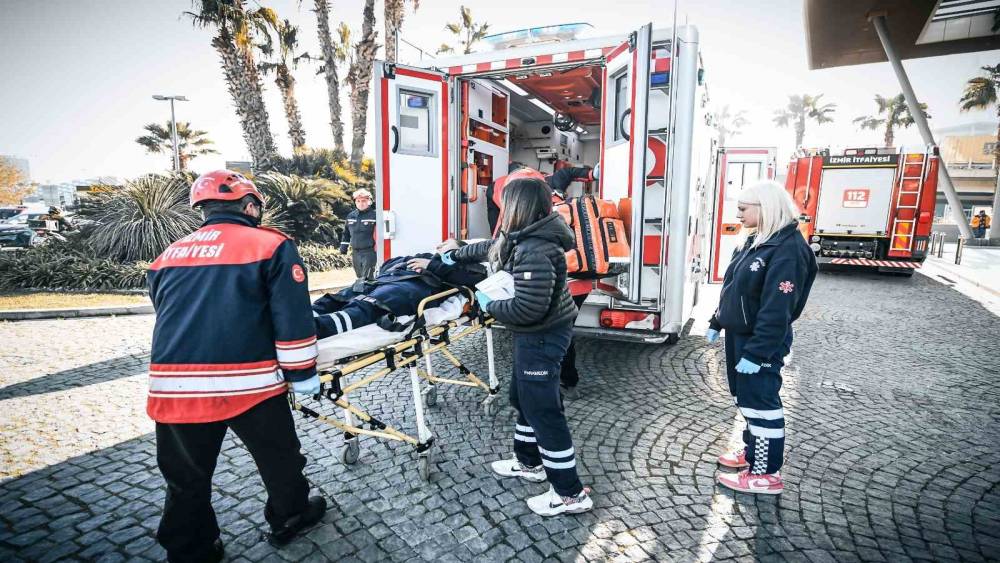 İzmir Büyükşehir Belediyesi İtfaiye Dairesi Başkanlığı ekipleri, yüksek katlı binalarda muhtemel yangın ve acil durumlara hazırlık amacıyla Bayraklı gökdelenler bölgesinde bulunan 47 katlı bir binada kapsamlı bir yangın ve arama kurtarma tatbikatı gerçekleştirdi. Senaryoya göre, binanın 11. katındaki temizlik odasında sigaranın söndürülmeden atılması sonucu çıkan yangın kısa sürede büyüdü. Çalışanlar 112 Acil Çağrı Merkezi’ne haber verdi. Olay yerine hızla ulaşan itfaiye ekipleri, mahsur kalan bir personeli güvenli şekilde kurtarırken, yangını da kontrol altına aldı. Dumandan etkilenen kişi AKS ekiplerince ilk müdahaleyi aldı.