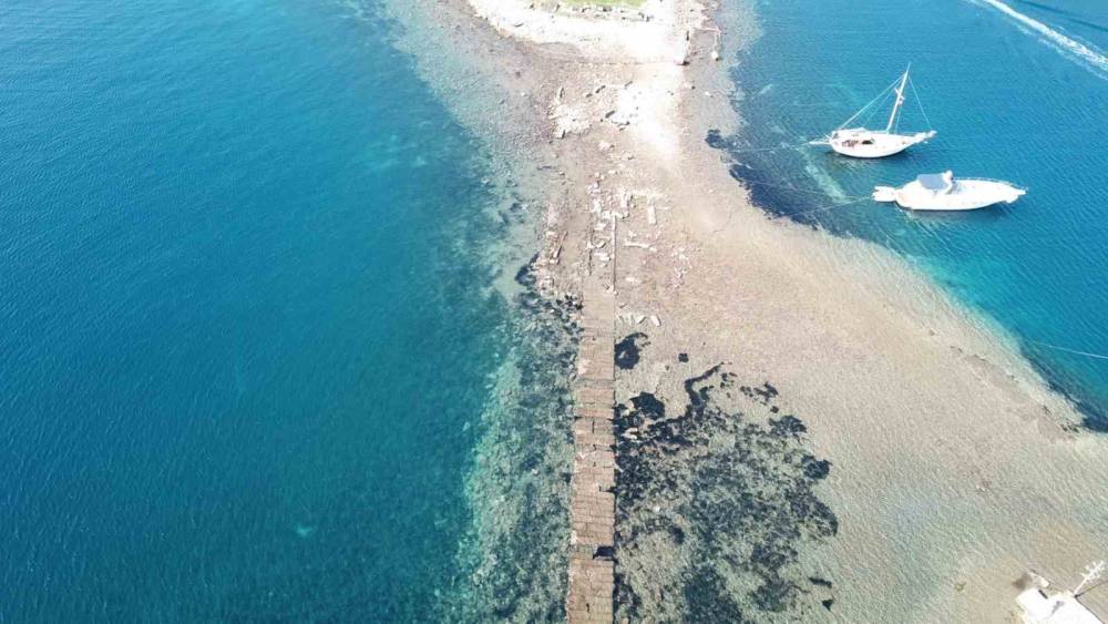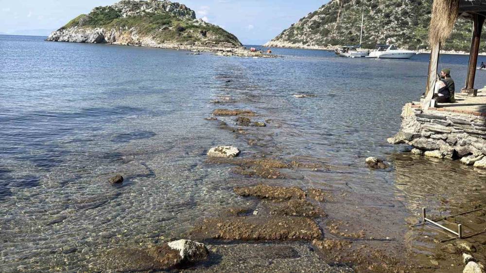 Muğla’nın Bodrum ilçesinde denizin aniden çekilmesiyle binlerce yıllık tarih yeniden gün yüzüne çıktı. Gümüşlük koyunda suların geri çekilmesiyle, antik Mydos kentine uzanan yaklaşık 3 bin 500 yıllık kral yolu yeniden ortaya çıktı.Yaz aylarında binlerce yerli ve yabancı turistin ziyaret ettiği Mydos Antik Kenti’ne uzanan tarihi yolun bu mevsimde tamamen görünür hale gelmesi, bölge halkı ve ziyaretçilerde şaşkına çevirdi. Normal şartlarda denizin altında kalan yolun ortaya çıkması, kıyıdaki vatandaşların dikkatini çekti.Tavşan Adası’na yürüyerek ulaştılarYaklaşık 150 metre uzunluğunda ve 2.5 metre genişliğindeki tarihi kral yolu sayesinde vatandaşlar, antik Mydos kentinin bulunduğu Tavşan Adası’na çıplak ayakla yürüyerek ulaşma imkanı buldu. Deniz tabanının açığa çıkmasıyla birlikte birçok kişi tarihi yol üzerinde yürüyerek adaya geçti.