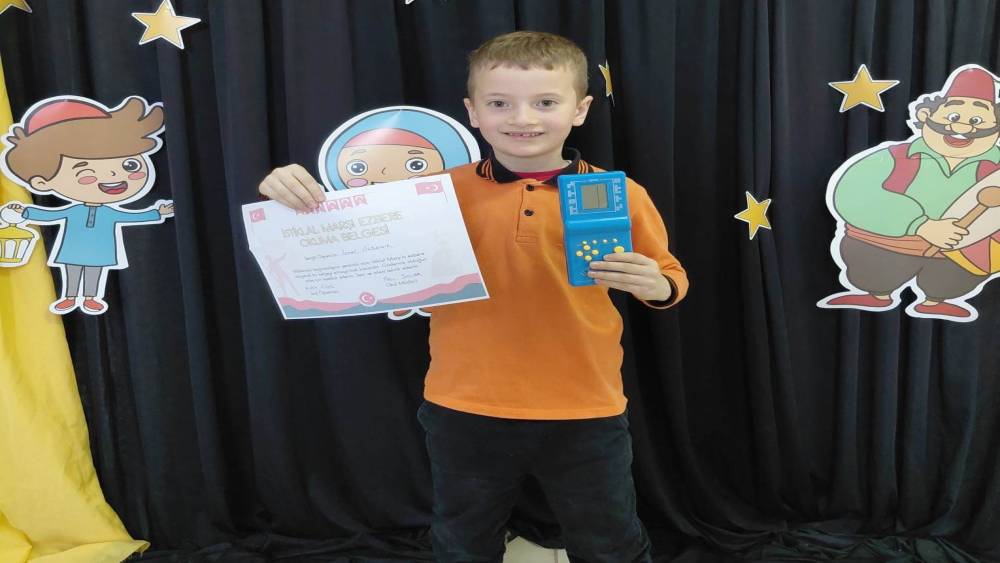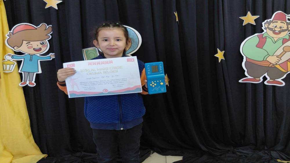Öğrencilerin bu anlamlı başarısı karşısında Sınıf Öğretmeni İbrahim Güleç, İstiklal Marşı’nı hatasız ve ezbere okuyan 12 öğrenciye "İstiklal Marşı Okuma Belgesi" ile nostaljik el atarisi hediye etti.