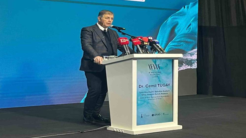 Sektörün başarısına ve küresel pazardaki durumuna dikkat çeken Başkan Tugay, "İzmir’in emeğini, başarma gücünü ve 19 yıldır ilmek ilmek işlediğimiz bir başarı öyküsünü hep birlikte kutluyoruz. Gelinlik, damatlık ve abiye giyim sektöründe artık bir dünya markası haline gelen IF Wedding Fashion İzmir’deki bu büyük buluşmaya hepiniz hoş geldiniz. Moda ve hazır giyim sektörü dünyada kabuk değiştiriyor. Artık sadece üretmek yetmiyor; tasarım, özgünlük ve yenilikçilik asıl katma değeri belirliyor. Bakın, rakamlar çok açık: Küresel düğün kıyafetleri pazarı 80 milyar doları aşmış durumda ve kısa sürede 100 milyar dolarlık dev bir sektör haline gelecek" ifadelerini kullandı.