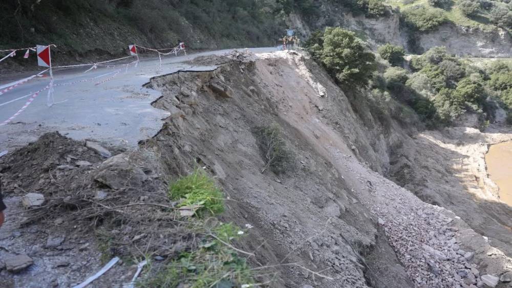 Aydın’ın İncirliova ilçesinde yağışlardan sonra çökme yaşanan Arzular Eğrek yolunda ekiplerin çalışması devam ediyor.