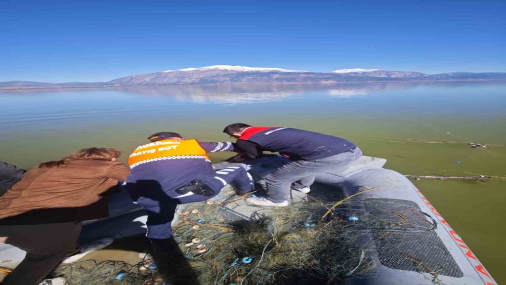 Gölde yapılan kontrollerde yaklaşık 5 bin metre uzunluğunda kaçak balık ağı tespit edilerek ele geçirildi. Ağlara takılan 60 adet anaç sazan balığı ise ekipler tarafından canlı olarak kurtarılarak tekrar göle bırakıldı.