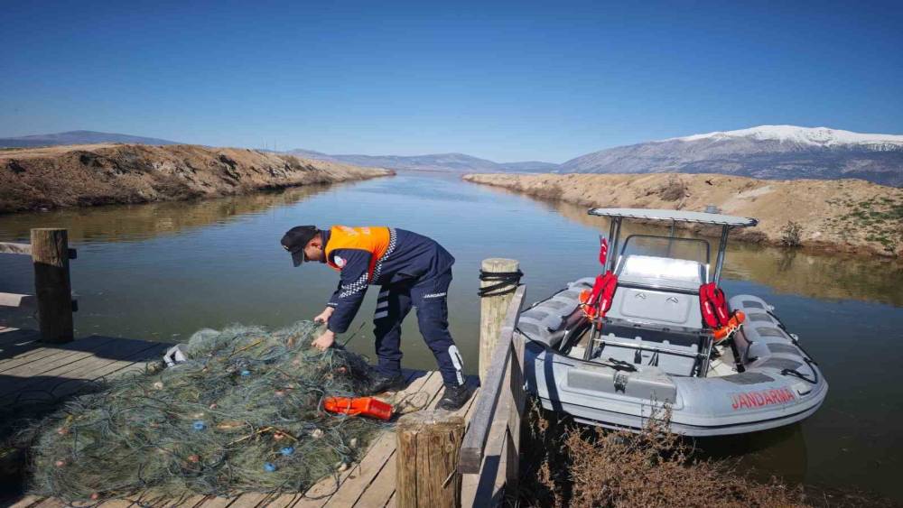 Işıklı Barajında kaçak avcılığa geçit yok 5 bin metre ağ ele geçirildi