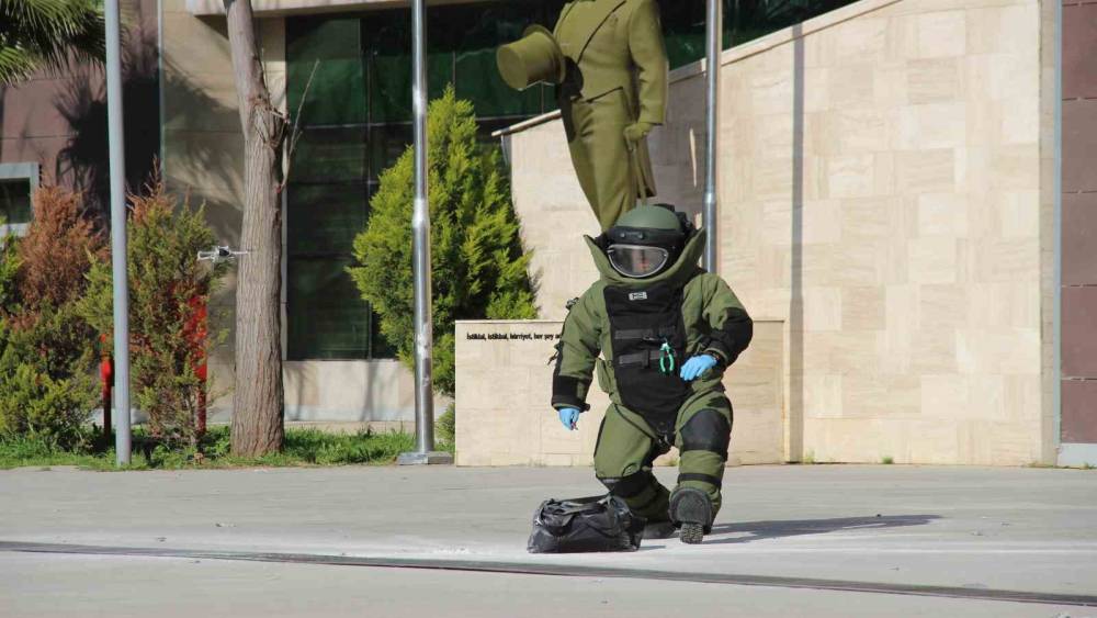 İzmir Bölge Adliye Mahkemesi hizmet binasında, çeşitli kurumların katılımıyla kontrollü bomba imha tatbikatı düzenlendi. Ekiplerin ortaklaşa yürüttüğü tatbikatta, senaryo gereği binaya bırakılan şüpheli paketler imha edilerek personel ve vatandaşların güvenli tahliyesi sağlandı.