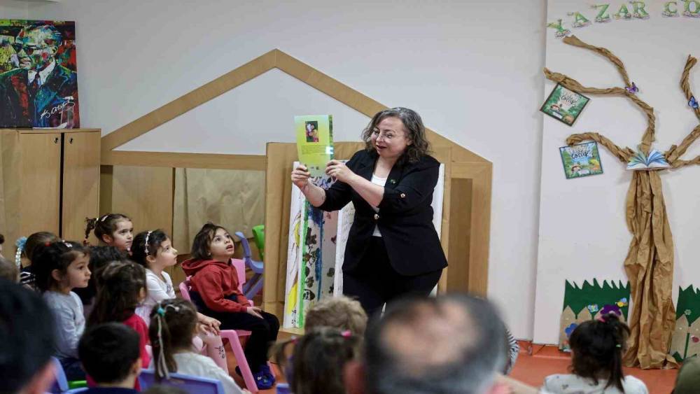Okul öncesi öğretmeni Nilay Yücel, depremde kaybettiği kızlarının anısını yaşatmak amacıyla kaleme aldığı "Vera & Lena Doğada Neler Oluyor?" adlı kitabı çocuklara okudu. Aynı zamanda 22 öğrencisi bulunan bir okul öncesi öğretmeni olduğunu belirten Yücel, çocuklara depremi ve doğa olaylarını onların anlayabileceği bir dille anlattı. Etkinlikte ayrıca, Yücel’in kızları Vera ve Lena’nın fotoğraflarından yapay zekâ yardımıyla hazırlanan kısa bir video da çocuklara izletildi. Minik öğrencilerin dikkatle takip ettiği video, etkinliğe katılanlara duygu dolu anlar yaşattı.