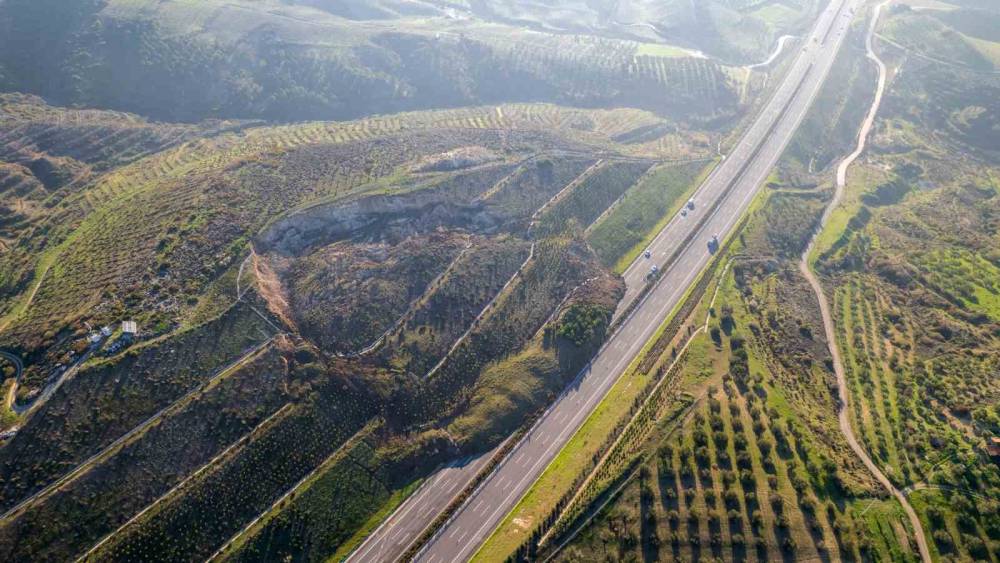 İstanbul-İzmir Otoyolu’nun Manisa geçişinde meydana gelen toprak kayması nedeniyle ulaşımda aksamalar yaşandı. Heyelan sebebiyle ulaşım tek yönden kontrollü şekilde sağlanıyor.Heyelan İstanbul-İzmir Otoyolu’nun Saruhanlı ile Turgutlu ilçeleri arasında kalan kesiminde meydana geldi. Bölgede etkili olan yağışların ardından yamaçtan kopan toprak ve kaya parçaları yola savruldu. İhbar üzerine olay yerine çok sayıda otoyol jandarma, asayiş ve Karayolları ekibi sevk edildi.Toprak kayması sonucu otoyolun 3 şeridi tamamen kullanılamaz hale gelirken, jandarma ekipleri güvenlik gerekçesiyle heyelan olan bölgeyi trafiğe kapatırken ulaşım tek şeritten kontrollü olarak sağlanıyor.Yolun tamamen temizlenmesi ve güvenliğin tam sağlanması için bölgedeki çalışmaların sürdüğü öğrenildi.Olayla ilgili inceleme devam ediyor.