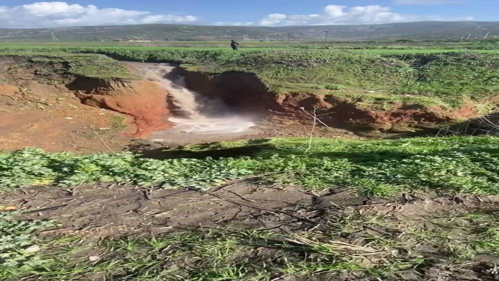 İzmir’in Menderes ilçesine bağlı Karakuyu Mahallesi’nde, geçtiğimiz yıllarda yaşanan ve tarım arazilerinde derin çatlaklara yol açan obruk bölgesinde sağanak yağış hareketliliği yaşanıyor. Bölgede etkili olan son yağışlarla birlikte, daha önce obrukların oluştuğu alanlar yeniden suyla dolmaya başladı. Ocak 2019’da aralıksız süren yağışlar sonucu derin yarıkların oluştuğu ve suların yer altına şelale şeklinde aktığı tarım arazileri, son sağanak yağmurun ardından tekrar göle döndü. Yağışların etkisiyle bölgedeki çay ve derelerin su seviyesi yükselirken, biriken sular obrukların bulunduğu havzada toplandı.