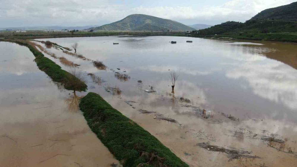 İzmir’in Torbalı ilçesinde etkili olan şiddetli sağanak yağış sonrası Torbalı Ovası’ndaki pamuk ve buğday ekilen tarlalar ile hobi bahçeleri tamamen sular altında kaldı. Göle dönen arazilerde mahsur kalan bir otomobil ve ekili alanların son durumu dron kamerasıyla görüntülenirken, göle dönen ovayı gören vatandaşlar da manzara fotoğrafı çekti.