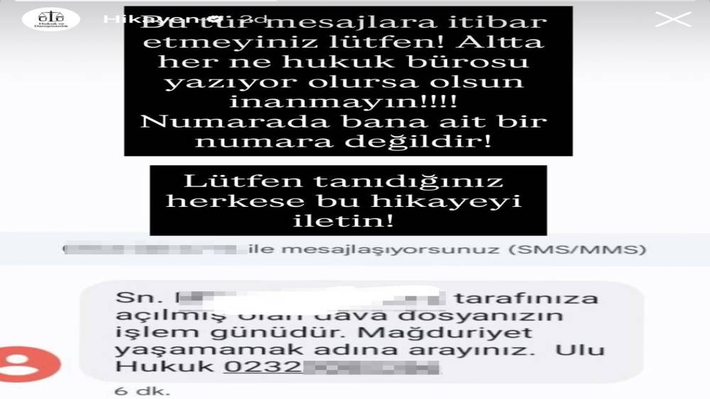 Sabah uyandığında telefonda yaklaşık 50-60 adet cevapsız arama olduğunu fark eden Avukat Yasin Ulu, "Aramaların neyle ilgili olduğunu anlamak için geri dönüş yaptığımda, bir dolandırıcılık şebekesinin hukuk büromuzun adını kullanarak insanları kandırmaya çalıştığını öğrendik. ‘Ulu Hukuk’ adıyla gönderilen mesajlarda, sözde ceza davası ya da icra takibinin son ödeme günü olduğu, ödeme yapılmazsa ciddi sonuçlarla karşılaşılacağı belirtiliyor ve mesajın altında yer alan numaranın aranması isteniyor. İnternetten gerçek telefon numaramı bulup beni arayan vatandaşlara bunun bizimle hiçbir ilgisi olmadığını, sadece ismimizin kullanıldığını özellikle söylüyorum. Ancak buna rağmen inananlar da oluyor. Bazı vatandaşlara link gönderildiğini, bu linke tıklandığında e-Devlet sitesine çok benzeyen, ancak sahte olan bir sayfa açıldığını öğrendik. Bu sahte sitede adım adım yönlendirme yapılarak kişisel bilgilerin girilmesi isteniyor ve ardından 40-50 bin lira gibi yüksek meblağlar talep ediliyor. Hatta ‘bugün öderseniz indirim olur’ gibi ifadelerle 10-17 bin liraya dosyanın kapatılacağı söyleniyor." dedi.