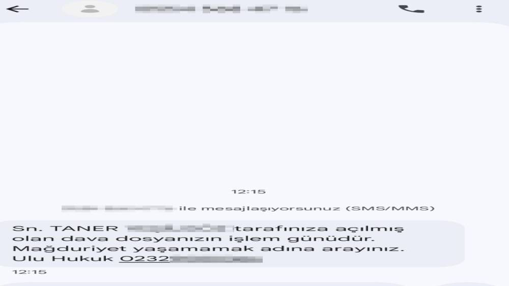 İzmir’de bulunan bir hukuk bürosunun adını kullanarak vatandaşlara "Tarafınıza açılmış dava dosyanızın işlem günüdür" şeklinde mesajlar gönderen dolandırıcılık şebekesi, kurdukları sahte e-Devlet sitesi üzerinden çok sayıda kişiyi tuzağa düşürdü. Hukuk bürosunun sahibi Avukat Yasin Ulu, telefonuna gelen yüzlerce çağrı üzerine dolandırıcılığı fark ederek, adını ve bürosunu kullanan şebeke hakkında suç duyurusunda bulundu.
