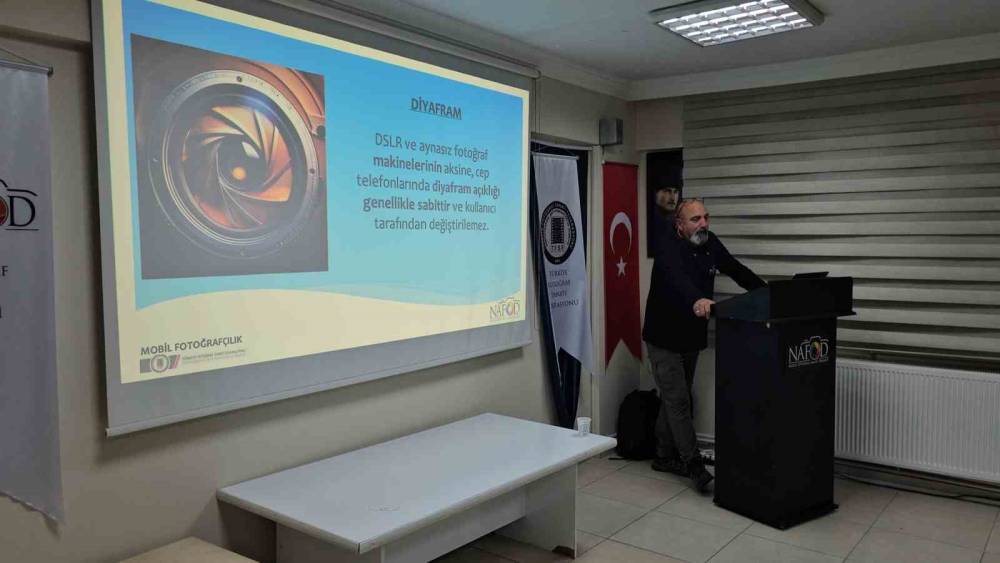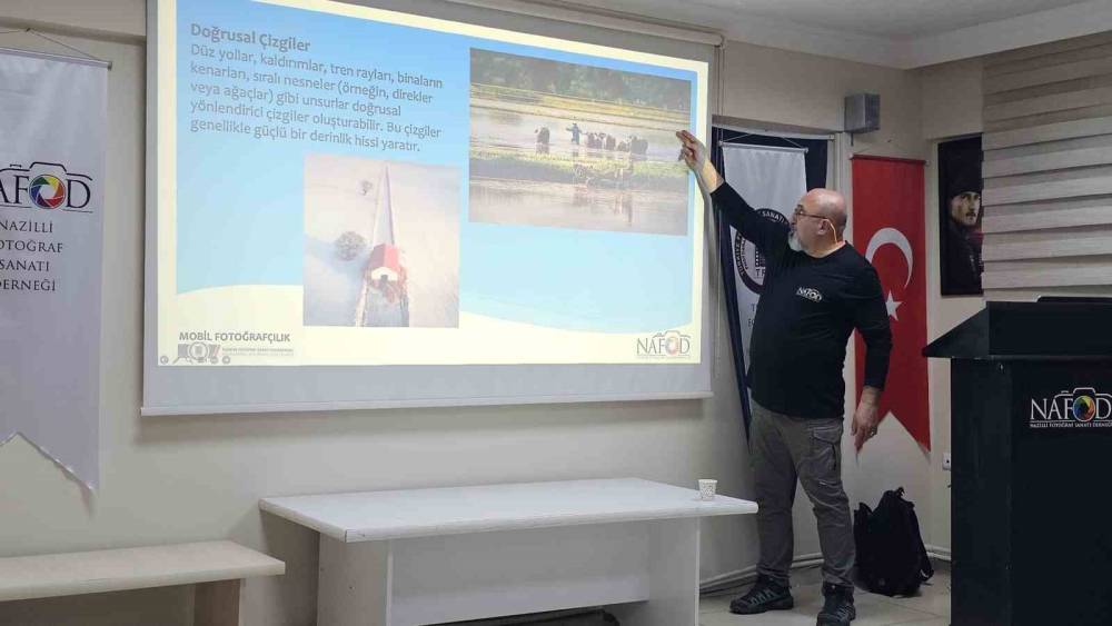 NAFOD ve Aydın Fotoğraf Sanatı Derneği (AYFOD) işbirliğinde Nazilli’deki dernek hizmet binasında düzenlenen etkinliğe çok sayıda fotoğraf tutkunu katıldı. NAFOD Yönetim Kurulu Üyesi, Fotoğraf Eğitmeni Kamil Okyay, eğitim seminerine katılan üyeler başta olmak üzere öğrenci ve diğer fotoğraf meraklılarına mobil fotoğrafçılığın temellerini anlattı. Mobil fotoğrafçılığın temelleri, renk uyumu ve kontrast, mobil fotoğrafçılıkta bakış ve hareket yönü, mobil fotoğrafçılıkta çizgiler - çerçeveler, mobil fotoğrafçılıkta kompozisyon, uygulama önerileri, ekipman ve aksesuarlar ile mobil fotoğraf uygulamalarını anlattı. 30 gün sürecek proje içerisinde teorik uygulamanın ardından saha çalışması yapılarak, cep telefonu kameraları ile çekilen fotoğrafların değerlendirmeye alınacağı belirtildi. Okyay sunumunda, cep telefonlarının işleyiş açısından fotoğraf makinelerine pek çok konuda benzese de dikkat edilmesi gereken farklılıklar olduğunun önemle altını çizerek, "Tarihteki ilk mobil fotoğraf 1997 yılında Philippe Kahn tarafından çekilmiştir. Mobil fotoğrafçılığı gelişmesi ve yayılması ancak 2002 yıllarında cep telefonlarının yaygınlaşması ile mümkün olmuştur. Mobil fotoğrafçılıkta fark oluşturan en önemli unsurlardan biri, kameranın kalbi sayılan görüntü sensörü ve onun sihirli rakamları olan boyutu ve çözünürlüğüdür. Işığı algılayan ve onu dijital verilere dönüştüren bu minik parça, fotoğrafın kalitesini doğrudan etkiler. Sensör boyutu ne kadar büyükse, o kadar fazla ışık toplayabilir. Profesyonel fotoğraf makinelerinde bulunan tam kare (Full Frame) sensörler, 36x24 mm gibi büyük boyutlara sahiptir. Oysa mobil telefonlardaki sensörler çok daha küçüktür" dedi.