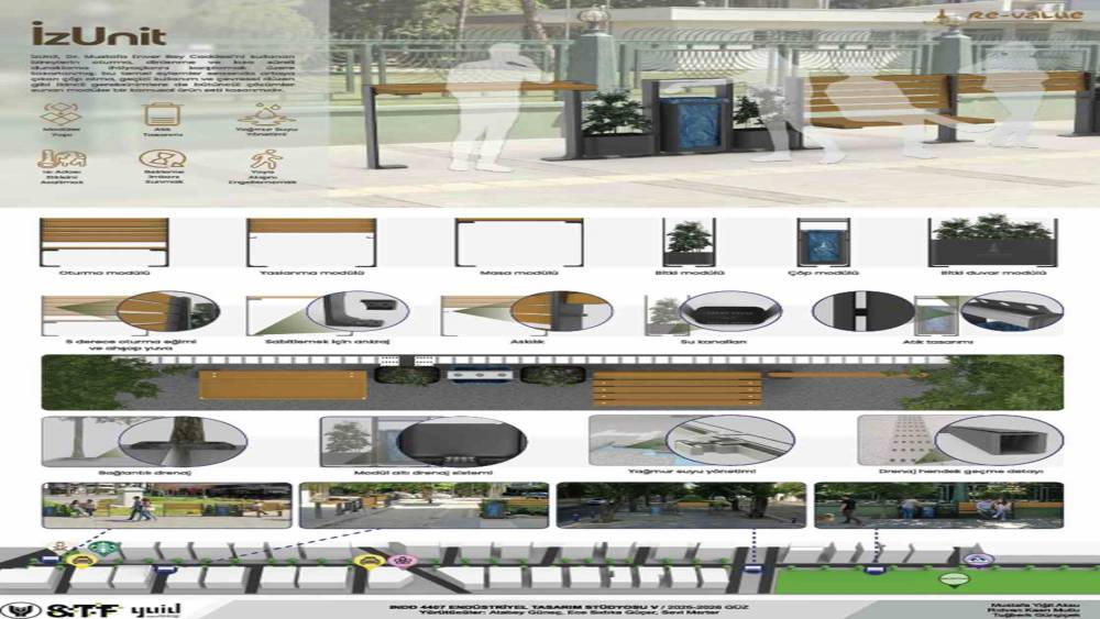 Proje hakkında bilgi veren Yaşar Üniversitesi Endüstriyel Tasarım Bölümü Dr.Öğr.Üyesi Sevi Merter "INDD 4407 Endüstriyel Tasarım Stüdyosu 5 dersi kapsamında 4. sınıf öğrencilerimiz, 8 haftalık projede veriye dayalı ve katılımcı bir yaklaşımla, kentin stratejik kamusal alanlarına yönelik tasarımlar geliştirmeyi hedeflediler. Gerçekleştirdikleri detaylı saha analizleri, anket, röportaj ve kullanıcı gözlemleriyle kentin güncel kamusal ihtiyaçlarını tespit ederek; oturma elemanlarından aydınlatmaya, atık yönetim birimlerinden yönlendirme sistemlerine kadar çeşitli kentsel donatı ürünleri tasarladılar. Projede, öğrencilere gerçek bir tasarım problemine veriye dayalı yöntemlerle çözüm üretme ve uluslararası Re-Value projesi vizyonuyla çalışma deneyimi kazandırıldı. İzmir de bu sayede kamusal alanların güncel ihtiyaçlarına yanıt veren ve kent belleğini yansıtan, üretimi kolay ve sürdürülebilir kentsel tasarım önerilerine kavuşmuş oldu. Bu önerilerin kentin geleceği için oldukça yüksek potansiyel taşıdığına inanıyoruz" dedi.