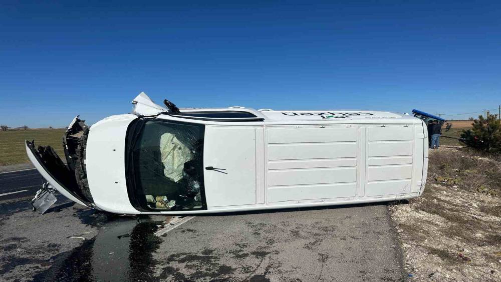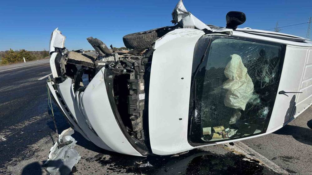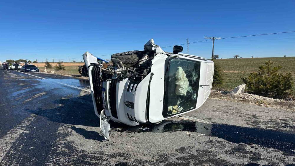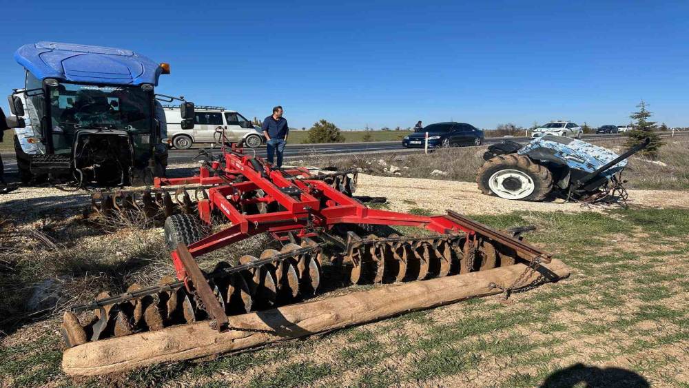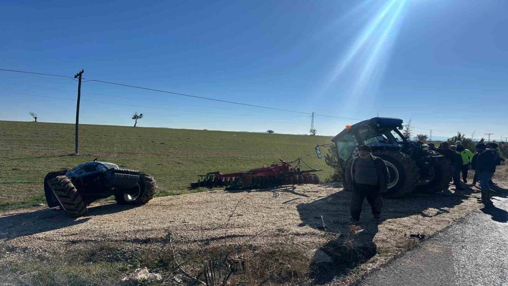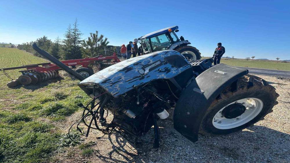 Kamyonetle çarpışan traktör ikiye bölündü