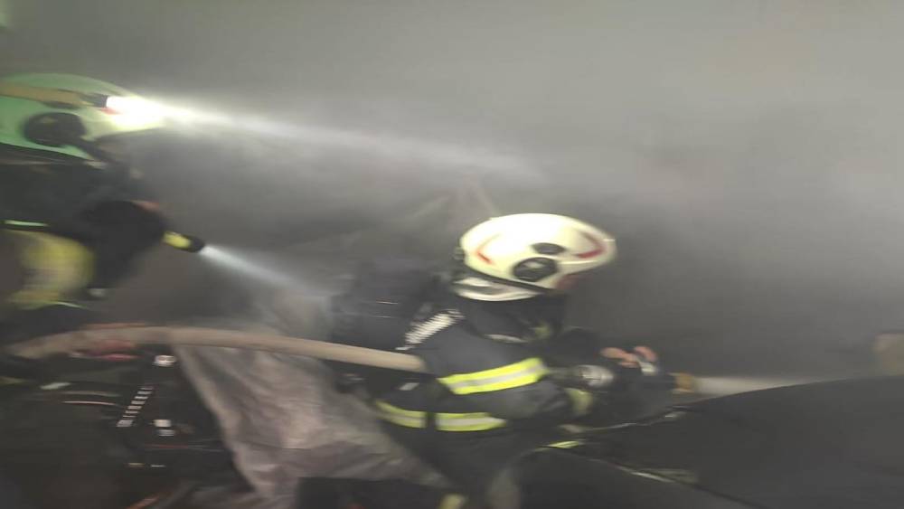 Kapalı otoparkta duran otomobile alevler sarsı