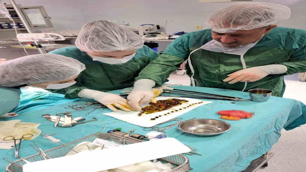 Manisa’nın Salihli ilçesinde karın ağrısı şikayetiyle hastaneye başvuran yaşlı kadının safra kesesinden yapılan ameliyatla irili ufaklı binlerce taş çıkarıldı.