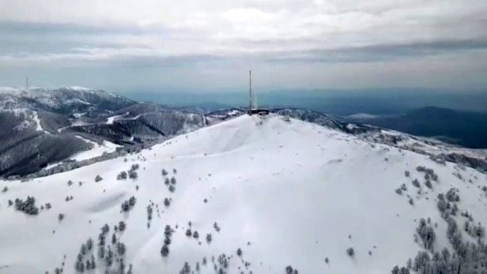 Muğla’nın yüksek rakımlı ilçesi Kavaklıdere’de etkili olan kar yağışı, kartpostallık görüntüler oluşturdu. Bölgenin en yüksek noktası olan Göktepe Dağı’nın karla kaplı zirvesi drone ile havadan görüntülendi.