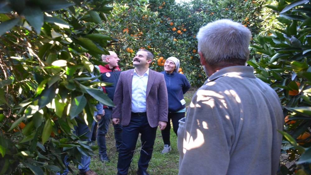 MUĞLA (İHA) – Muğla’nın Köyceğiz ilçesinde, coğrafi işarete sahip ’Köyceğiz Portakalı’nda hasat sürerken, hasat çalışmalarına Köyceğiz Kaymakamı Mert Kumcu da katılarak üreticilerle birlikte portakal topladı.Hamitköy Mahallesi’nde gerçekleştirilen hasatta üreticilerle bir araya gelen Köyceğiz Kaymakamı Mert Kumcu, çalışmalar hakkında yerinde bilgi alarak çiftçilere bereketli bir sezon diledi. Türkiye genelinde ve yurt dışında kendi ismiyle satılan, ilçenin önemli tarımsal değerlerinden biri olan coğrafi işaretli ’Köyceğiz Portakalı’nın üreticiler için büyük önem taşıdığına dikkat çekilirken, Kaymakam Kumcu’nun hasada katılması üreticilere moral ve destek oldu. Ziyaretin, Köyceğiz’in tarımsal potansiyelinin tanıtılmasına katkı sağladığı ve üreticilerin emeğinin görünür hale gelmesi açısından önemli olduğu ifade edildi.Kaymakam Kumcu’ya hasat ziyaretinde Köyceğiz İlçe Tarım ve Orman Müdürü Eşref Arslan ile Hamitköy Mahallesi Muhtarı Ramazan Çelik de eşlik etti.