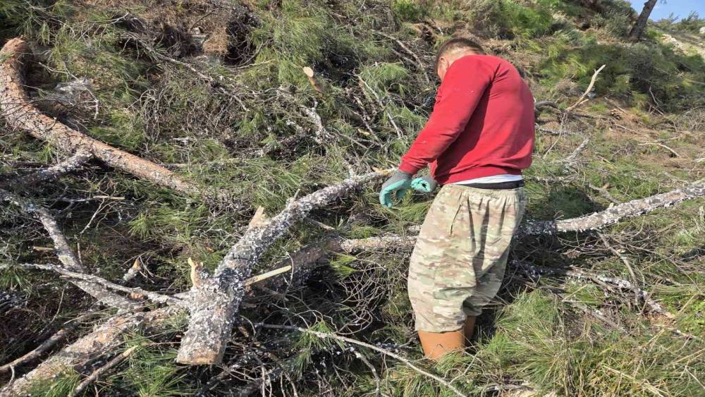 Muğla Sakar yolundan toplanan basralı dallar arıcılar için Marmaris ilçesi Karaca Mahallesi’ndeki ormanlık alana bırakıldı.
