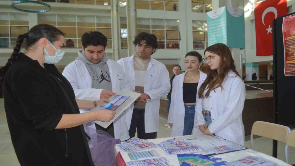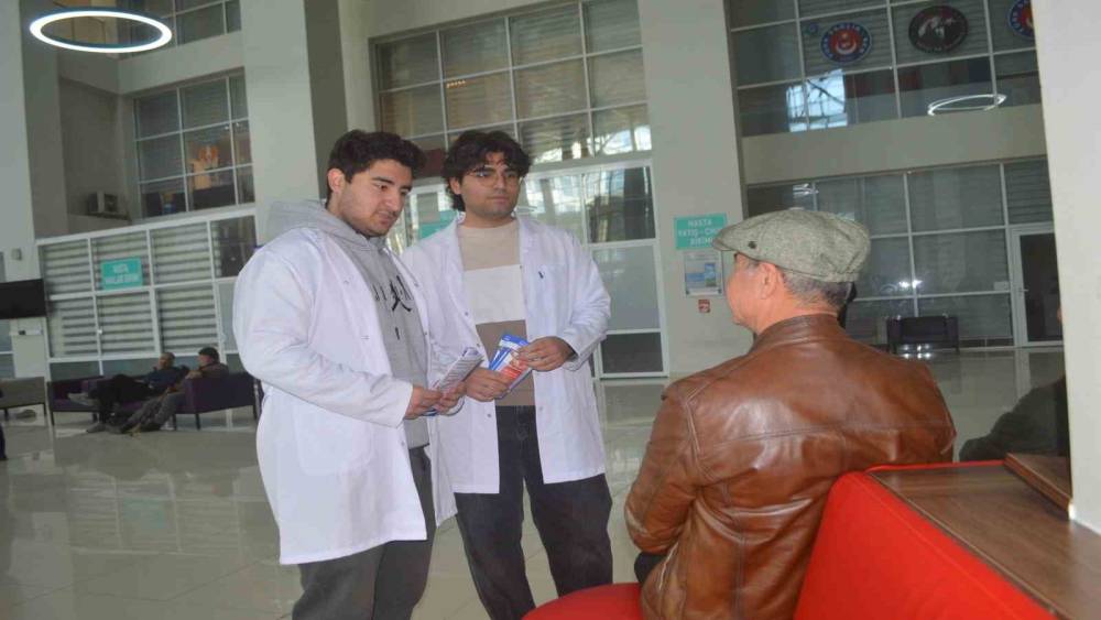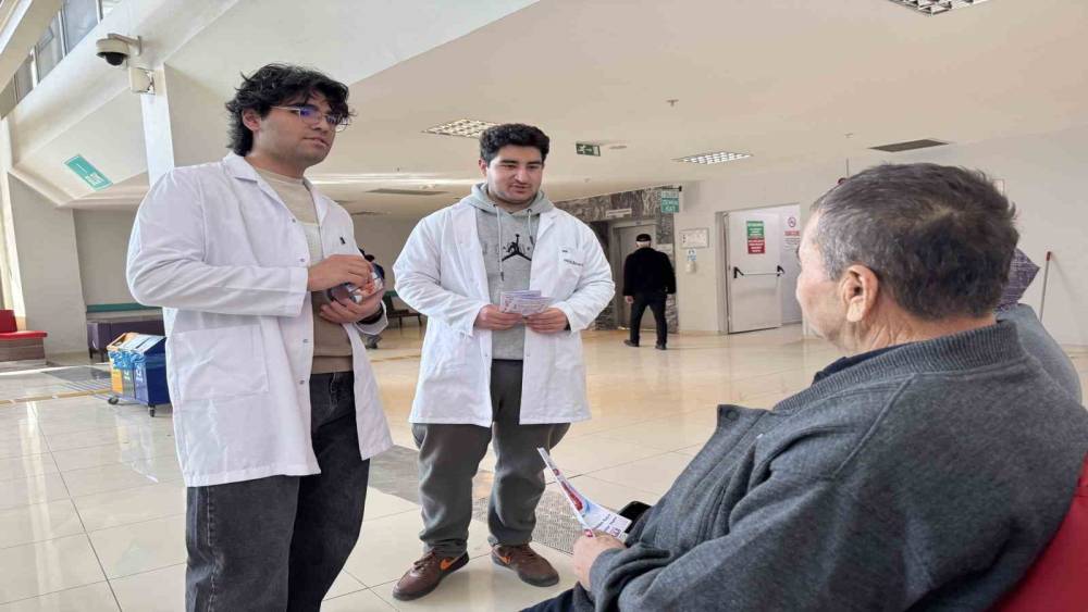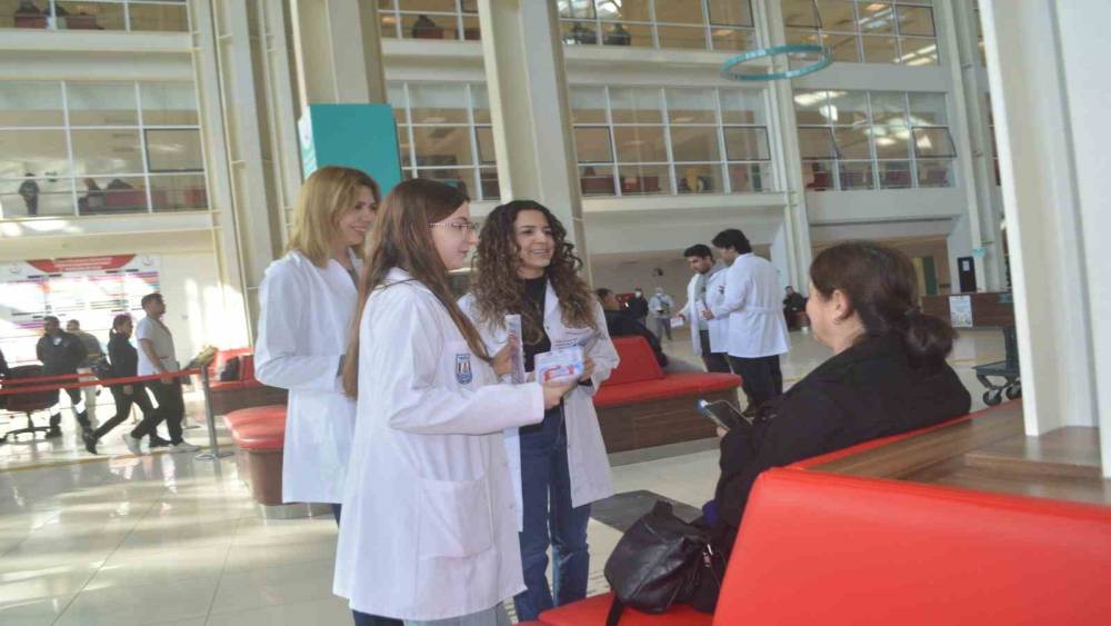 Hastane girişinde kurulan bilgilendirme standında, tıp fakültesi 1. sınıf öğrencileri gün boyu vatandaşlarla bir araya geldi. Kolon kanserinin dünyada en sık görülen üçüncü kanser türü olduğuna dikkat çeken genç adaylar, hastalığın gelişim süreci ve korunma yolları hakkında detaylı sunumlar yaptı.