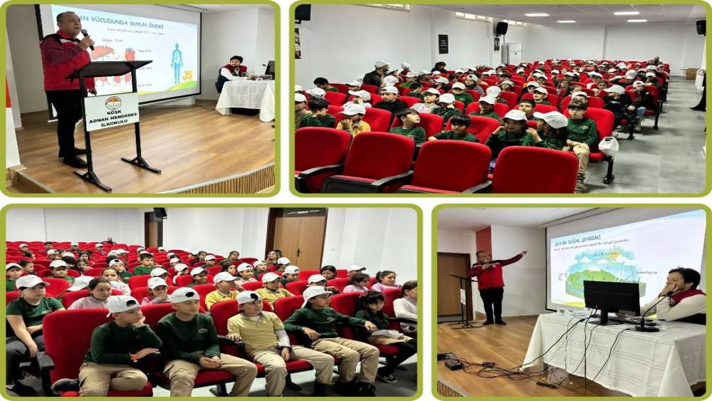 Aydın İl Tarım ve Orman Müdürlüğü bünyesinde faaliyet gösteren Su Verimliliği Birimi tarafından, Köşk ilçesindeki Adnan Menderes İlkokulu’nda 3. ve 4. sınıf öğrencilerine yönelik "Okullarda Su Verimliliği" konulu eğitim gerçekleştirildi. Eğitimde öğrencilere, suyun doğru ve tasarruflu kullanımı, su kaynaklarının korunmasının önemi ve günlük hayatta uygulanabilecek basit ama etkili tasarruf yöntemleri eğlenceli ve öğretici bir dille anlatıldı. Su kaynaklarının sürdürülebilirliği açısından erken yaşta bilinç oluşturmanın büyük önem taşıdığını vurgulayarak, çocuklarda su bilinci oluşturmak amacıyla yürütülen çalışmaların aralıksız devam edeceğini belirten Aydın İl Tarım ve Orman Müdürlüğü’nden yapılan açıklamada "İl Müdürlüğümüz Tarımsal Altyapı ve Arazi Değerlendirme Şube Müdürlüğü bünyesinde faaliyet gösteren Su Verimliliği Birimi tarafından, Köşk ilçemizde bulunan Adnan Menderes İlkokulu’nda 3. ve 4. sınıf öğrencilerine yönelik "Okullarda Su Verimliliği" konulu sunum ve eğitim gerçekleştirildi. Eğitimde, suyun doğru ve tasarruflu kullanımı, su kaynaklarının korunmasının önemi, günlük hayatta uygulanabilecek basit ama etkili tasarruf yöntemleri öğrencilerimize eğlenceli ve öğretici bir dille aktarıldı. Geleceğimizin teminatı olan çocuklarımızda su bilinci oluşturmak amacıyla yürüttüğümüz çalışmalarımız aralıksız devam edecektir" ifadeleri yer aldı.