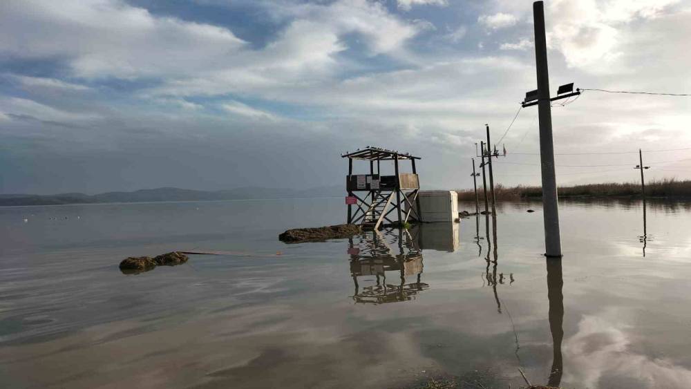 Muğla’nın Köyceğiz ilçesinde aralıklarla devam eden yağışlar nedeniyle Köyceğiz Gölü’nün su seviyesi yükseldi. Göl, Delta Mevkii’nde taşarak Köyceğiz Atatürk Kordonu’nun bir bölümünü sular altında bıraktı.