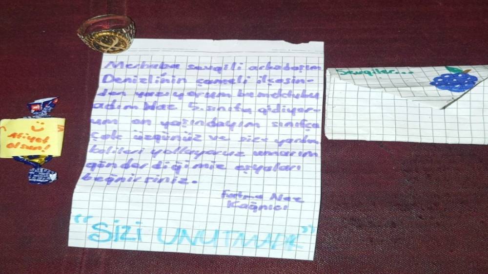 Çameli ilçesinden Fatma Naz Kağnıcı isimli bir kız çocuğunun, yardım kolisinin içerisine bıraktığı mektup; Hatay’ın İskenderun ilçesinde yaşayan depremzede bir aile için umut ve moral kaynağı oldu.