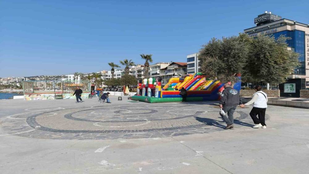 Kuşadası’nda güneşli havanın etkisini göstermesiyle birlikte sahil kesimleri, park ve bahçeler ile çocuk oyun alanları kısa sürede doldu. Aileleriyle birlikte sahile gelen vatandaşlar yürüyüş yaparken, çocuklar da oyun alanlarında gönüllerince vakit geçirdi. Sahil bandında bisiklet sürenler de güzel havanın tadını çıkardı. Mart ayına rağmen 22 dereceyi bulan sıcaklıkla birlikte ilçede adeta bahar havası yaşanırken, güzel havayı değerlendirmek isteyen vatandaşların yoğunluğu gün boyunca devam etti. Ege Bölgesi’nin gözde turizm merkezlerinden biri olan Kuşadası’nda yaşanan bu hareketlilik, yaz aylarını hatırlatan görüntüler oluşturdu.