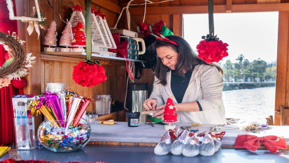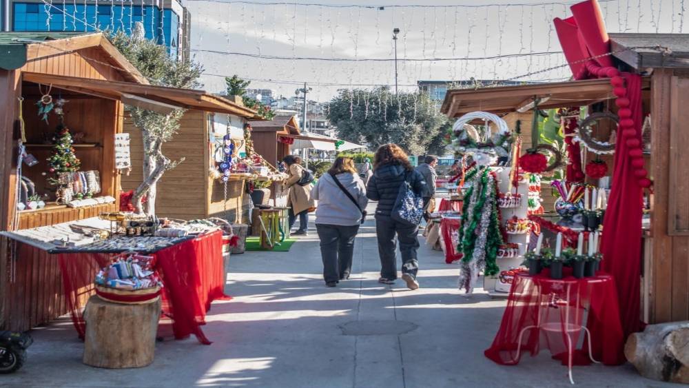 Kuşadası Belediyesi tarafından yaklaşan yeni yıl dolayısıyla kent merkezinde bulunan El Heykeli önünde yılbaşı pazarı kuruldu. Rengarenk tezgahları ve görünümüyle ilgi odağı olan yılbaşı pazarı, haftanın her günü ziyaret edilebilecek.