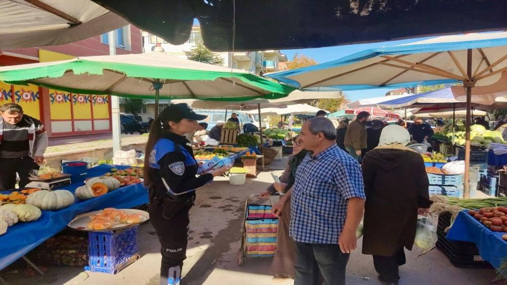 Ekipler tarafından hazırlanan bilgilendirici broşürler de pazar esnafı ve vatandaşlara dağıtılırken, özellikle son dönemlerde artış gösteren dolandırıcılık olaylarına karşı dikkatli olunması gerektiği vurgulandı.