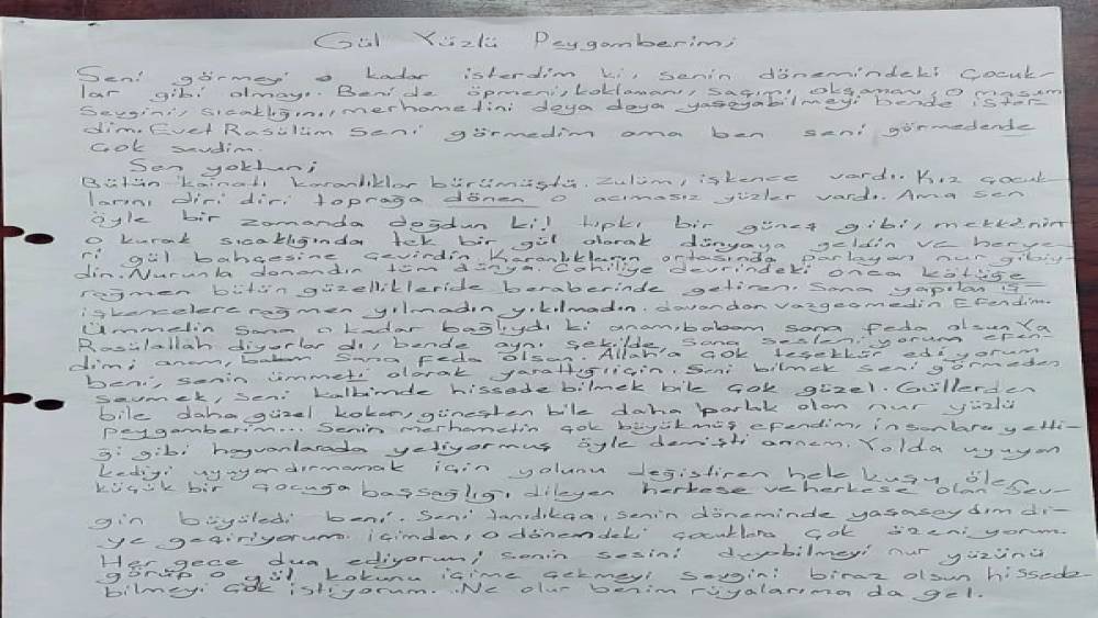 Yarışmada il birincisi olan Ayşe Nuran Akarçay,"Peygamberimizi (s.a.s.) çok seviyorum. Onun sözlerini ve davranışlarını öğrenmeyi çok seviyorum. Ona mektup yazmak benim için çok güzel bir duyguydu" dedi