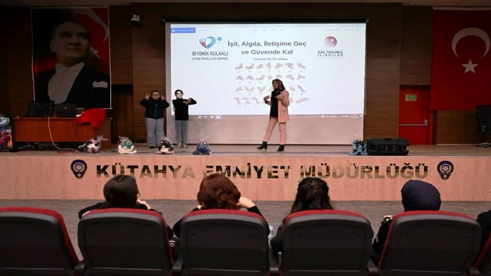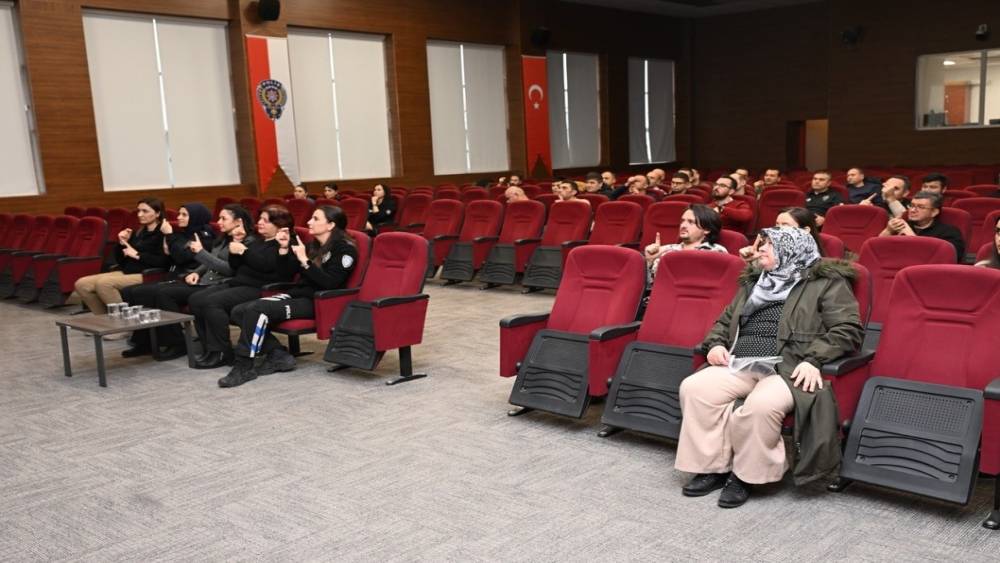 İl Emniyet Müdürlüğü Çok Amaçlı Eğitim Salonu’nda gerçekleştirilen seminere, İl Emniyet Müdürü Osman Elbir’in eşi ve Polis Eşleri Derneği Kütahya Şube Başkanı Pınar Elbir ile emniyet personeli katıldı. Seminer kapsamında, işitme engelli bireylerle daha sağlıklı iletişim kurulabilmesi amacıyla işaret dili kullanımı hakkında katılımcılara bilgiler verildi. Etkinlikte temel işaret dili ifadeleri uygulamalı olarak gösterilerek personelin farkındalığının artırılması hedeflendi.