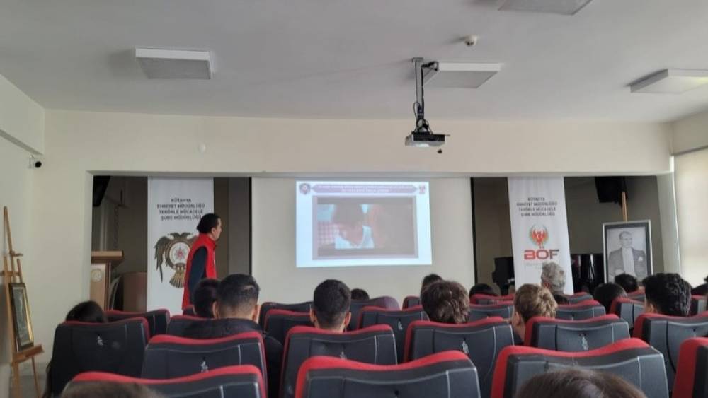 Kütahya İl Emniyet Müdürlüğü tarafından, "Gençlik ve Güvenli Gelecek" projesi kapsamında öğretmen ve öğrencilere yönelik bilgilendirme çalışması gerçekleştirildi.İl Emniyet Müdürlüğü Bilgilendirme ve Önleme Faaliyetleri (BÖF) ekipleri tarafından düzenlenen programda; terör örgütlerinin eleman temininin engellenmesi, güvenli arkadaş seçiminin önemi ve gençlerin risklere karşı bilinçlendirilmesi konularında bilgilendirme yapıldı.Eğitim kapsamında, öğretmen ve öğrencilerin olabilecek risklere karşı farkındalıklarının artırılmasının hedeflendiği belirtildi.