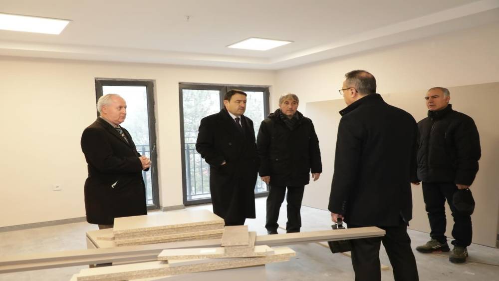 Kütahya Valisi Musa Işın, il protokolü ile birlikte yapımı devam eden öğretmenevi binasında incelemelerde bulundu.