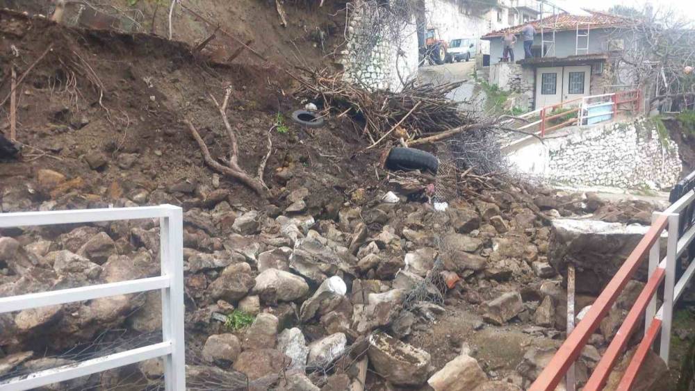 Aydın’ın Bozdoğan ilçesinde etkili olan sağanak yağış, Hisar Mahallesi’nde bir evin bahçe duvarının yıkılmasına neden oldu.