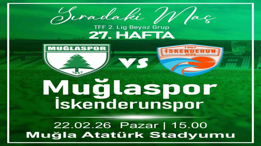 TFF 2. Lig Beyaz Grup’ta şampiyonluk mücadelesi veren ve ligin zirvesinde yer alan Muğlaspor, yarın kendi sahasında kritik bir maça çıkıyor. Yeşil-beyazlı ekip, taraftarı önünde İskenderunspor’u ağırlayarak galibiyet serisini sürdürmeyi hedefliyor.