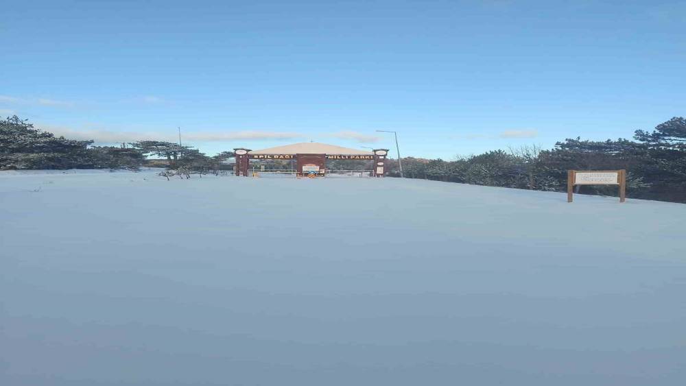 Manisa’nın önemli doğal alanlarından biri olan Spil Dağı Milli Parkı, gece saatlerinde etkili olan kar yağışıyla birlikte yeniden beyaza büründü.
