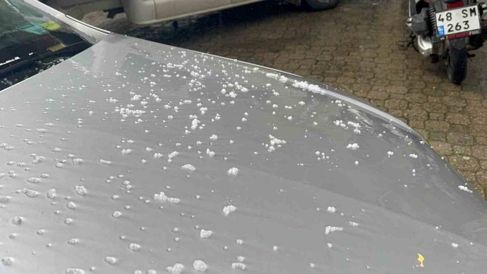 Marmaris’te dolu yağdı, kısa sürede ortalık beyaza büründü