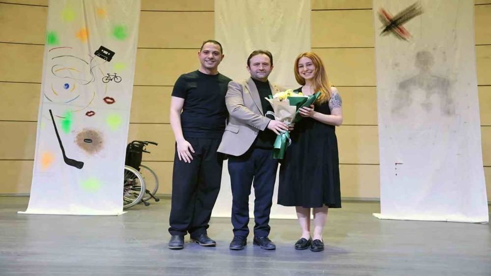 Oyunları izleyen Acıpayam Belediye Başkanı Levent Yıldırım, günün anısına Menteşe Belediye Tiyatrosu ekibine emekleri teşekkür ederek çiçek takdim etti.
