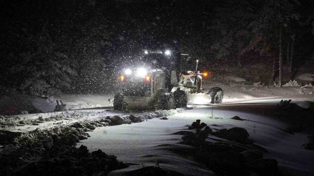 Menteşe Belediyesi ekipleri, Kozağaç Mahallesi ile Kavaklıdere ilçesini birbirine bağlayan yolda etkili olan yoğun kar yağışı nedeniyle gece boyunca aralıksız çalışma yürüttü.
