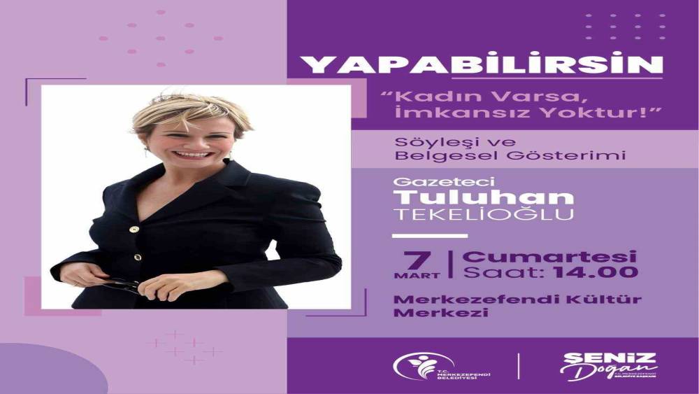 Merkezefendi Belediyesi kültür ve sanat etkinliklerine hız kesmeden devam ediyor. 8 Mart Dünya Emekçi Kadınlar Günü’nde Merkezefendi Belediyesi tarafından gerçekleştirilecek olan etkinliklerde 7 Mart Cumartesi günü saat 14.00’te Gazeteci Tuluhan Tekelioğlu, "Yapabilirsin, Kadın Varsa İmkansız Yoktur" başlıklı söyleşi ve belgesel gösterimi ile vatandaşlarla buluşacak. Programda kadınların başarı hikâyelerine ve ilham veren yaşam öyküleri anlatılacak. 8 Mart Pazar günü saat 16.00’da Türk Kadınlar Konseyi Derneği Ayşe Kaygın’ın "Varoluş Sergisi" sanatseverlerin ziyaretine açılacak. Sergi, 8-18 Mart tarihleri arasında ziyarete açık olacak. Aynı gün saat 20.00’de ise Denizli Kadın Platformu tarafından sahnelenecek olan "Kadınlık Bizde Kalsın" adlı tiyatro oyunu, Merkezefendi Kültür Merkezi Servergazi Salonu’nda izleyiciyle buluşacak.