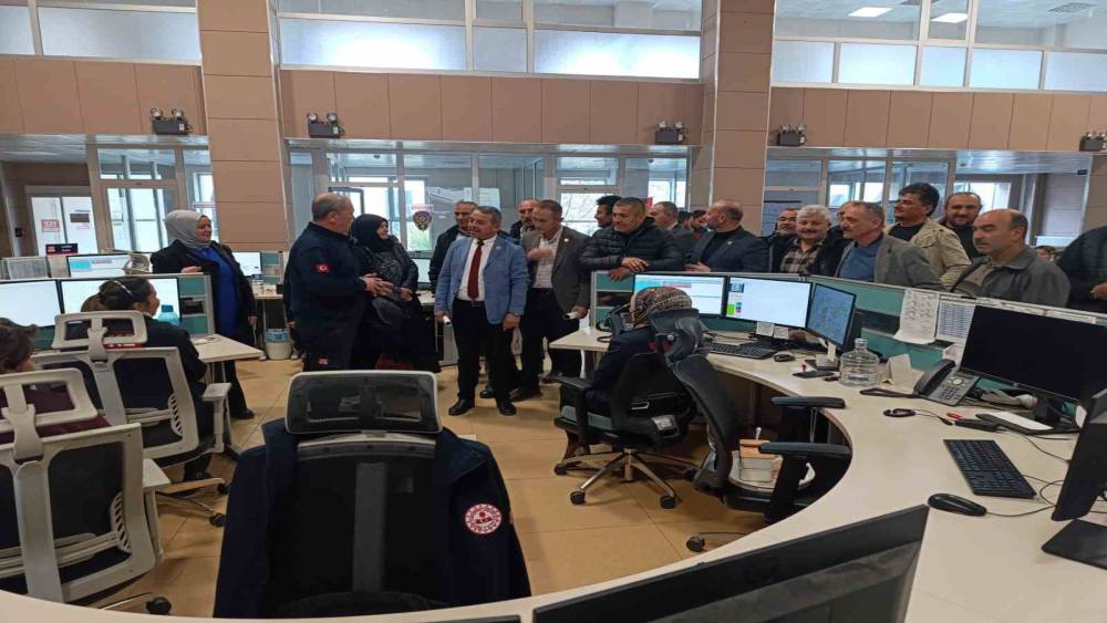 Kütahya Muhtar Derneği Başkanı İsmail Arı ve mahalle muhtarları, 112 Acil Çağrı Merkezi’ni ziyaret ederek, merkezde yürütülen çalışmalar hakkında bilgi aldı.