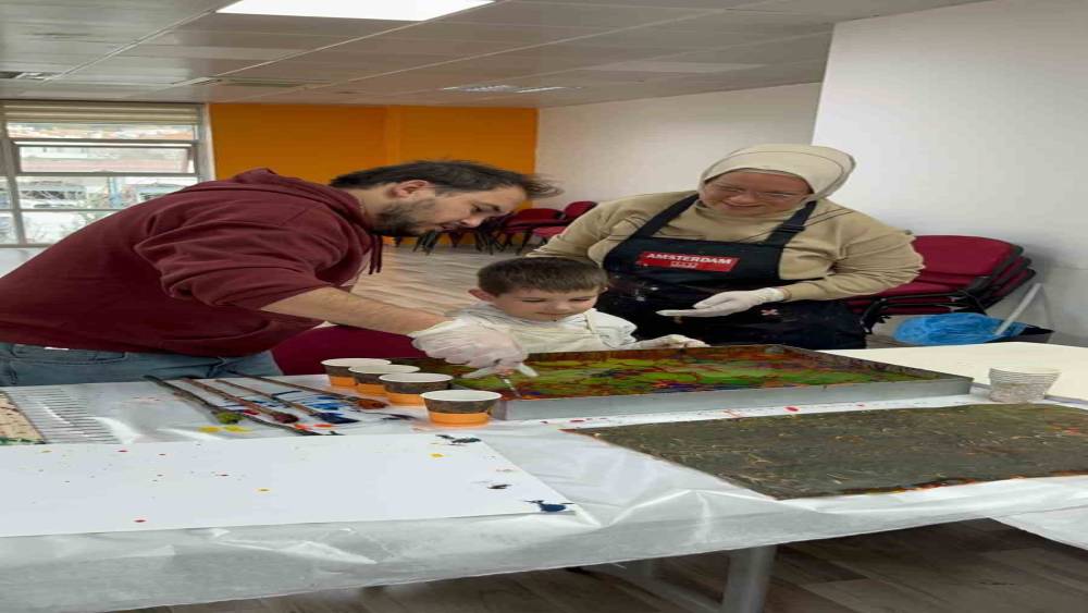 Muğla’da aileler ve çocuklar ebru sanatıyla renklerin yolculuğuna çıktı
