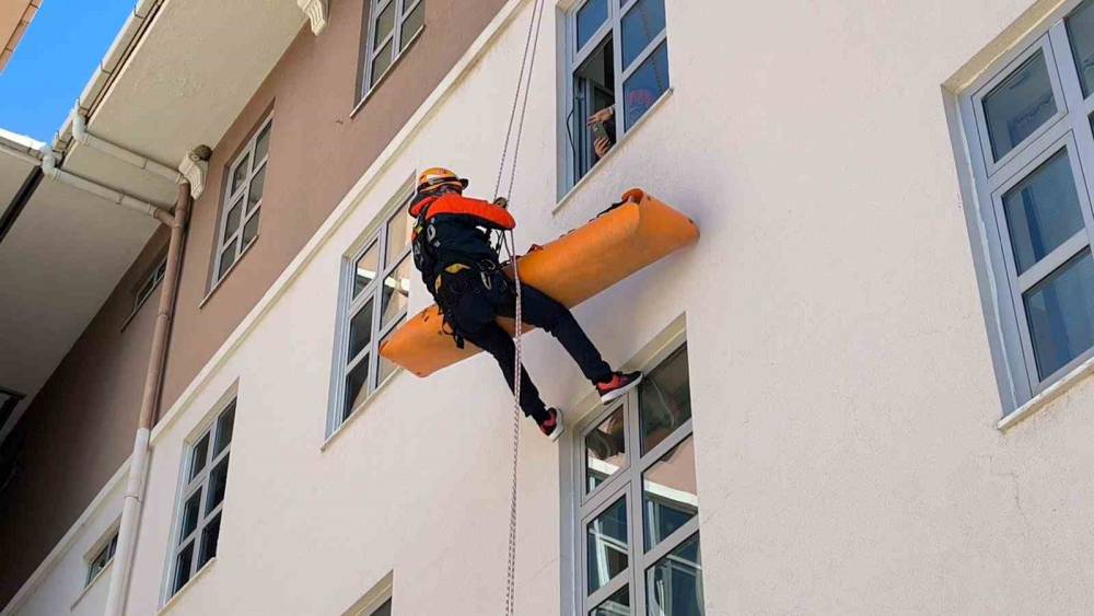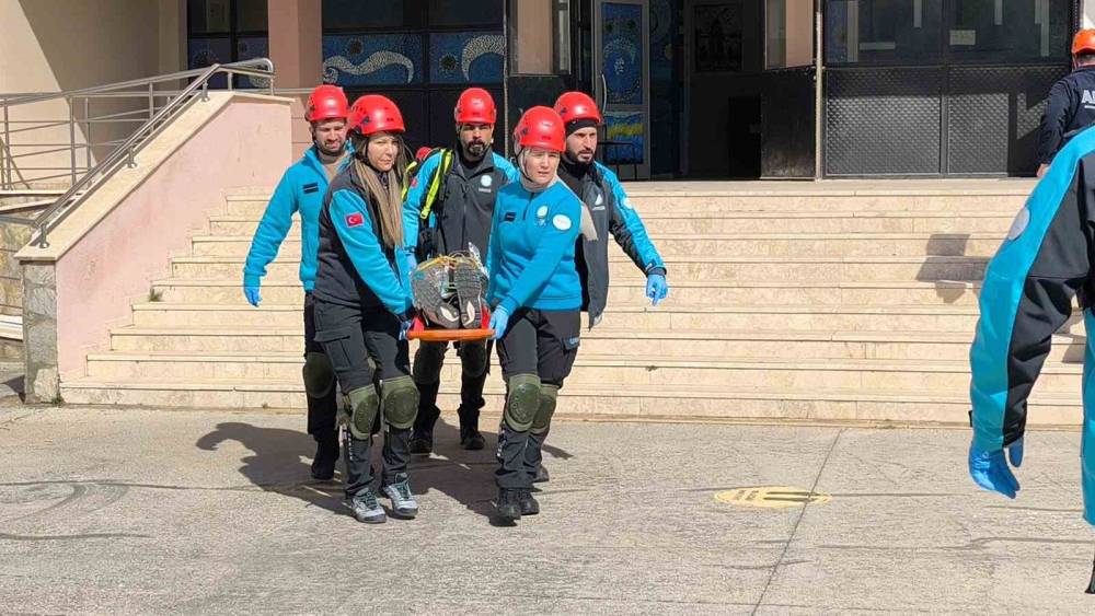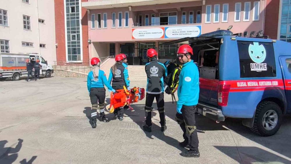 Muğla Güzel Sanatlar Lisesi’nde Deprem Haftası dolayısıyla düzenlenen geniş kapsamlı tatbikat, nefes kesen anlara sahne oldu. Tatbikatta senaryo gereği 6.8 büyüklüğündeki deprem sonrası mahsur kalanlar kurtarıldı.
