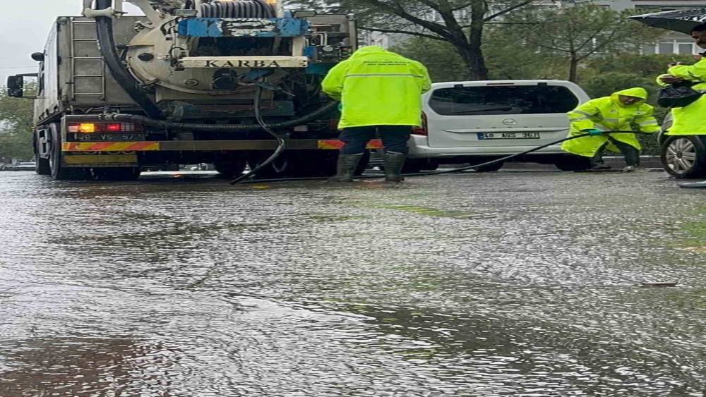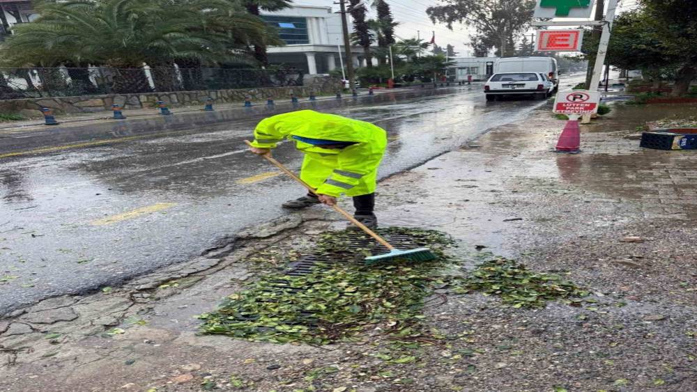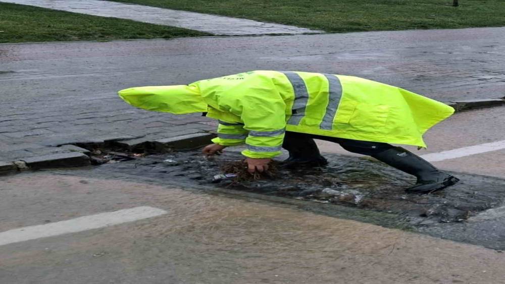 Sahadaki ekipler, tıkanan mazgalları ve derelerde temizlik çalışması yaparken, yağmur sularının yağış alan bölgelerden güvenli bir şekilde tahliye edilmesi sağladılar.