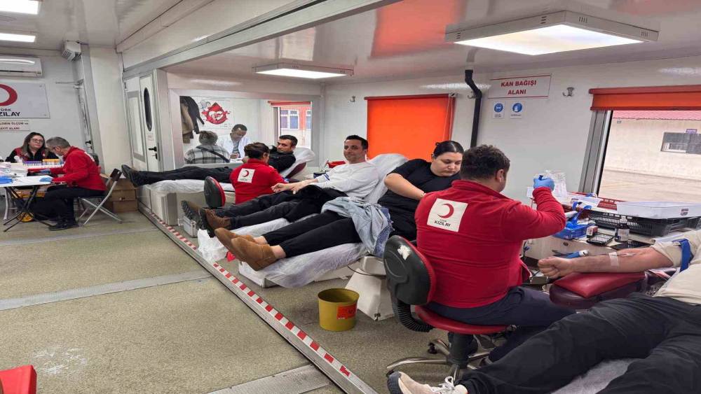 Aydın Kızılay Kan Bağışı Merkezi’nin Nazilli Turan Ortaokulu’nda düzenlediği kan bağışında öğrenci velileri 84 ünite bağış yaptı. Yoğun katılımla gerçekleştirilen kan bağışı kampanyasında kurulan ünitelerin önünde uzun kuyruklar oluştu.