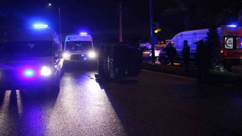 Otomobille çarpışan ticari araç yan yattı: 7 yaralı