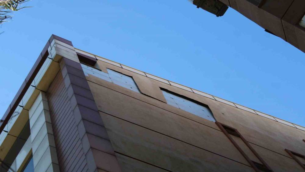 Rüzgar binanın cephesini söktü, facia kıl payı atlatıldı
