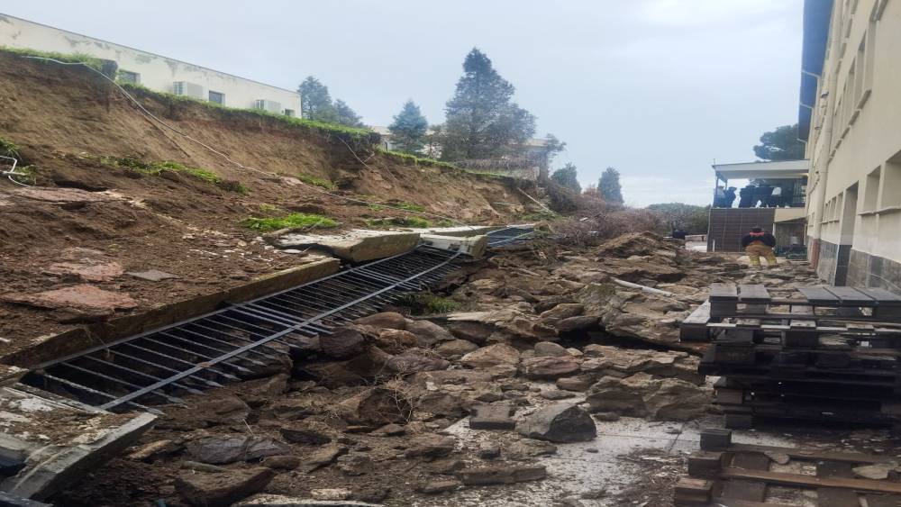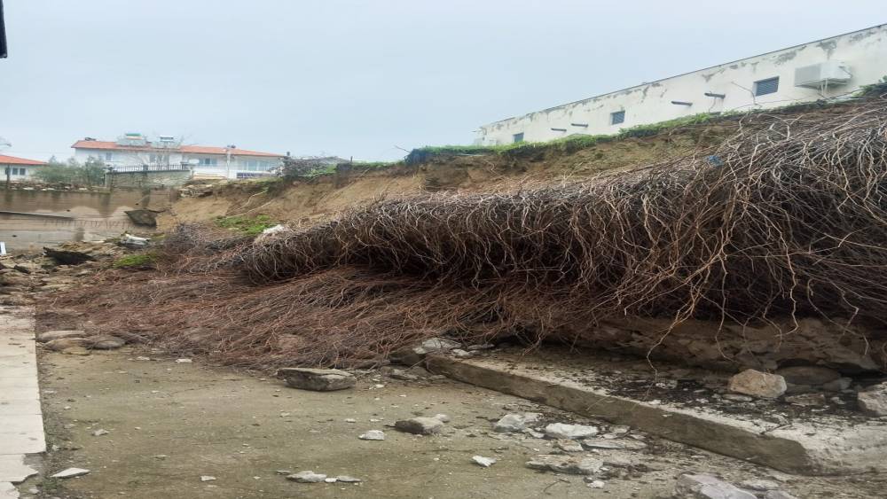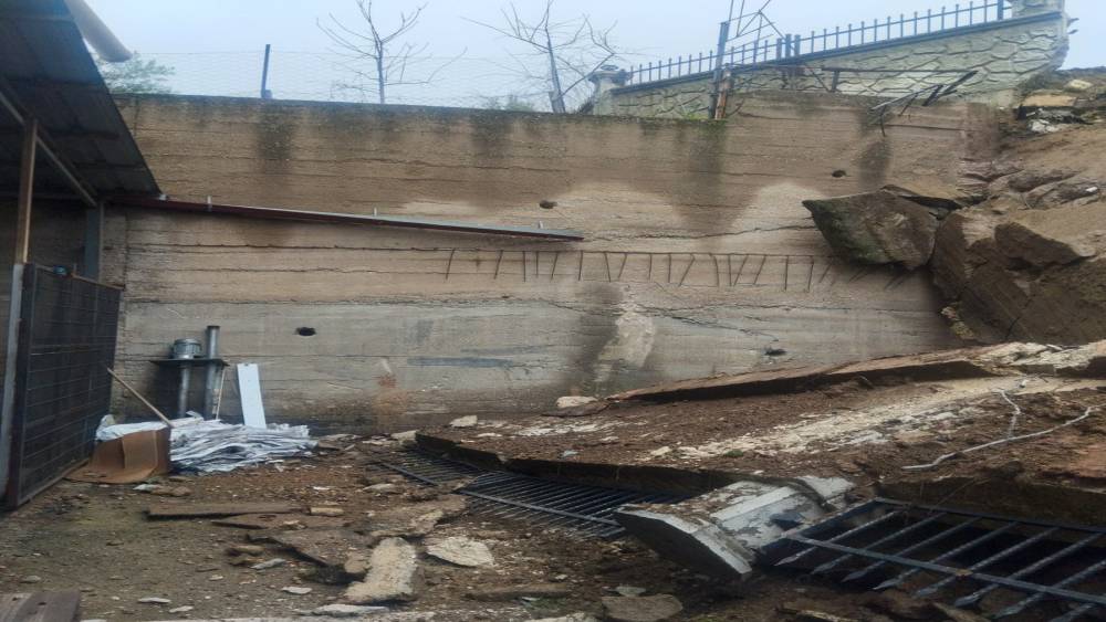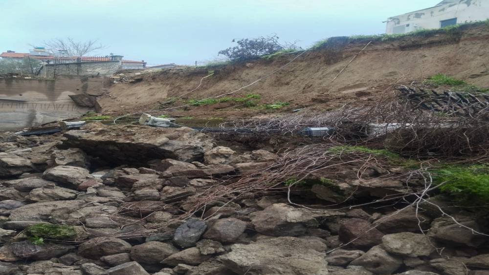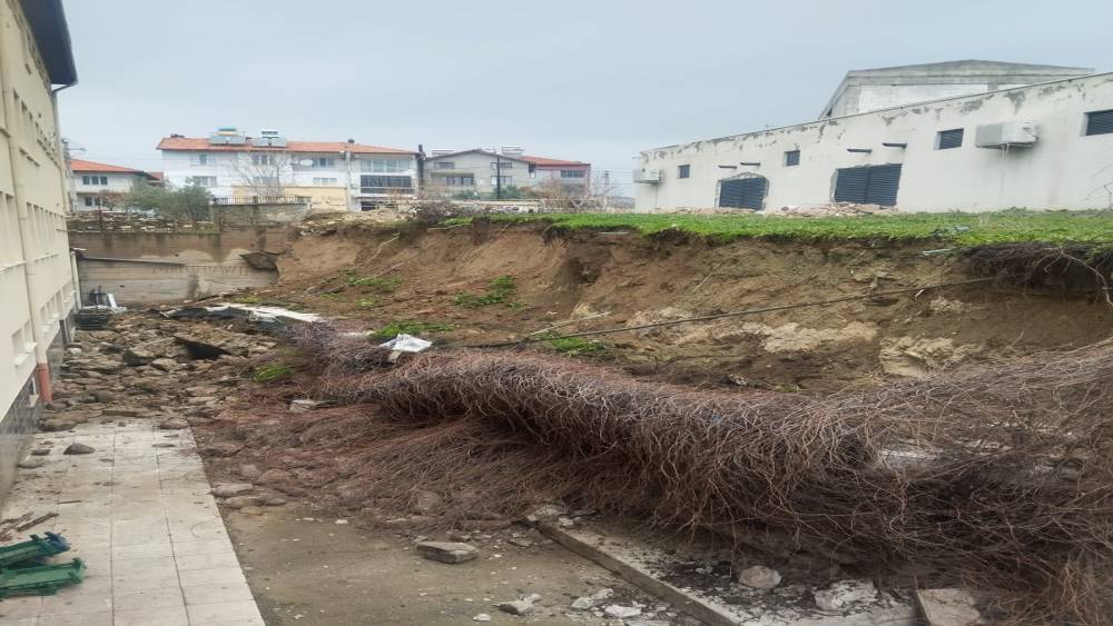 Sağanak yağmur okulun istinat duvarını yıktı