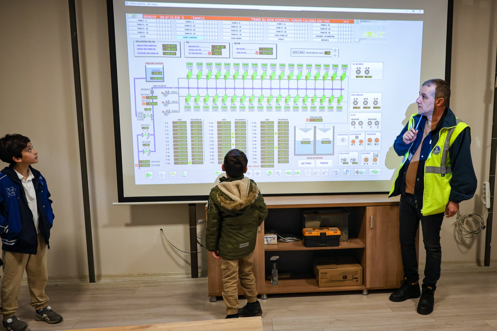 Minikler suyun kaynaktan arıtma tesisine ulaştırılmasını, arıtma basamaklarını ve şebekeye iletilme sürecini yerinde gözlemledi. Düzenlenen eğitimde suyun korunması ve tasarrufun önemine vurgu yapıldı. Tesis uzmanlarından bilgiler alan öğrenciler, suyun fiziksel ve kimyasal arıtma süreçlerini adım adım inceledi. Arıtılan suların laboratuvar ortamında gerçekleştirilen kalite kontrollerine dair uygulamaları heyecanlatakip ettiler.