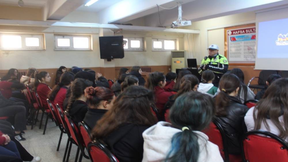 Salihli Hafsa Sultan Kız Mesleki ve Teknik Anadolu Lisesi’nde, Karayolu Trafik Güvenliği Eylem Planı kapsamında bilgilendirme semineri gerçekleştirildi. Seminere öğrenciler ve öğretmenler katıldı.